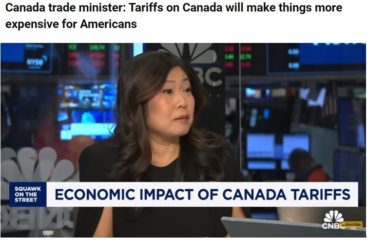 加拿大國貿部長伍鳳儀指出,加徵關稅會增加美國企業和家庭的成本,並讓美國人的生活成本變得更加昂貴。