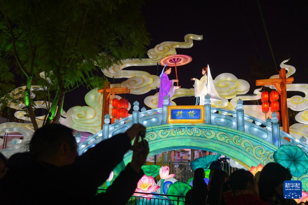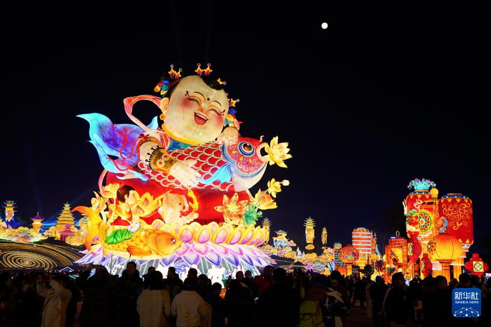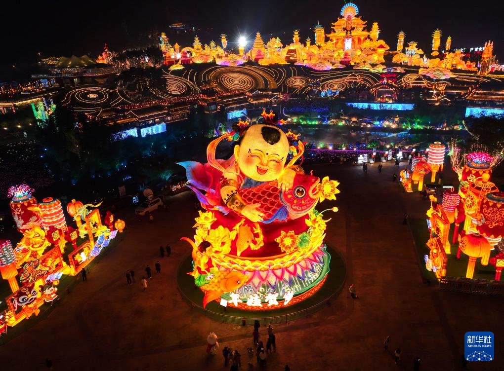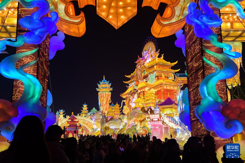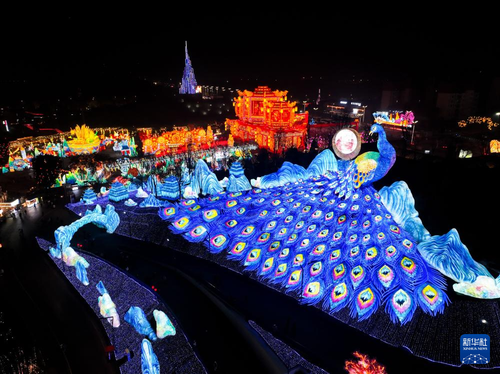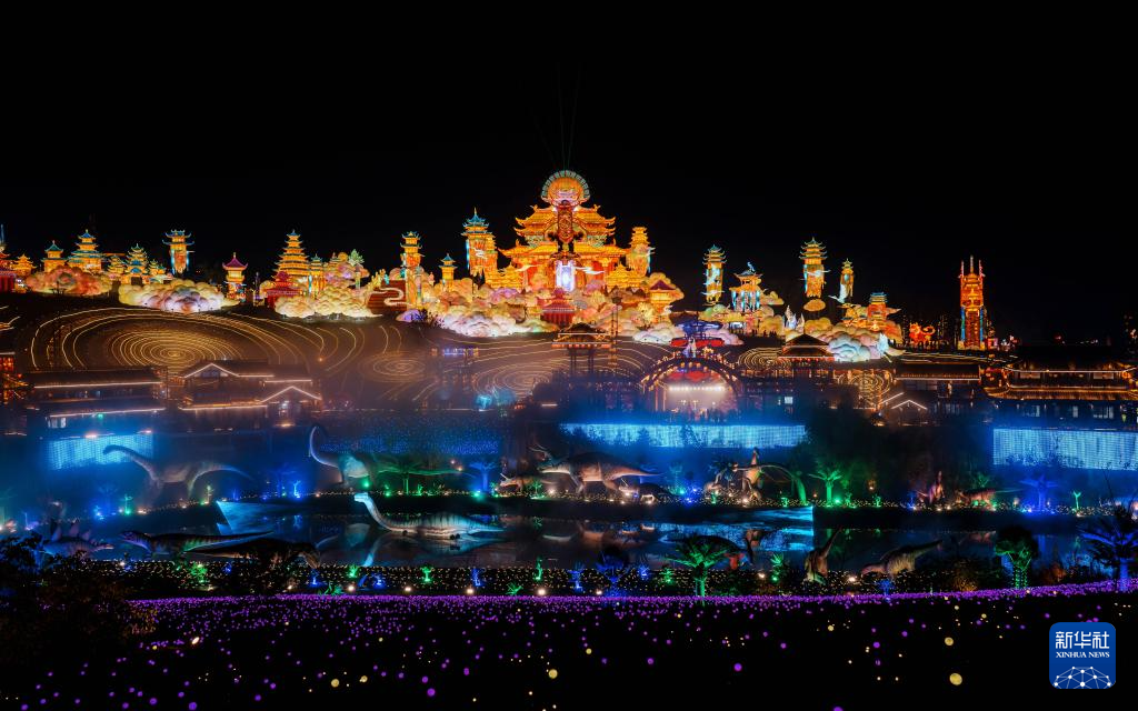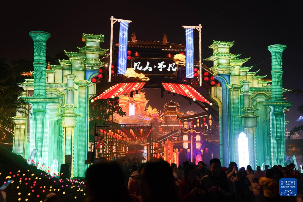 第31屆自貢國際恐龍燈會上拍攝的以國創動畫《凡人修仙傳》為主題打造的燈市燈組(1月14日攝)。