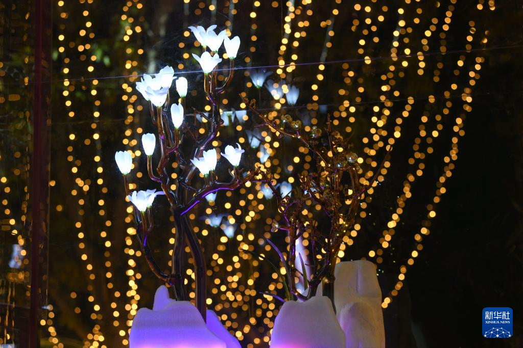 第31屆自貢國際恐龍燈會上展出的四川省級非物質文化遺產“玻璃吹塑技藝”代表性傳承人彭正華創作的燈組《玉宇冰姿》。