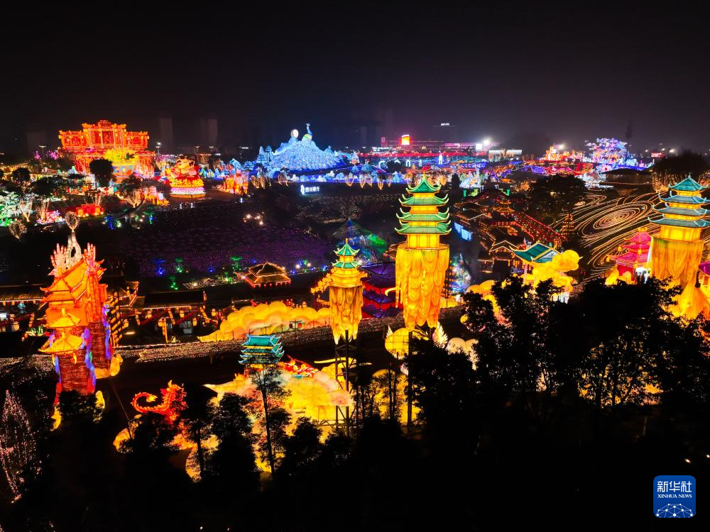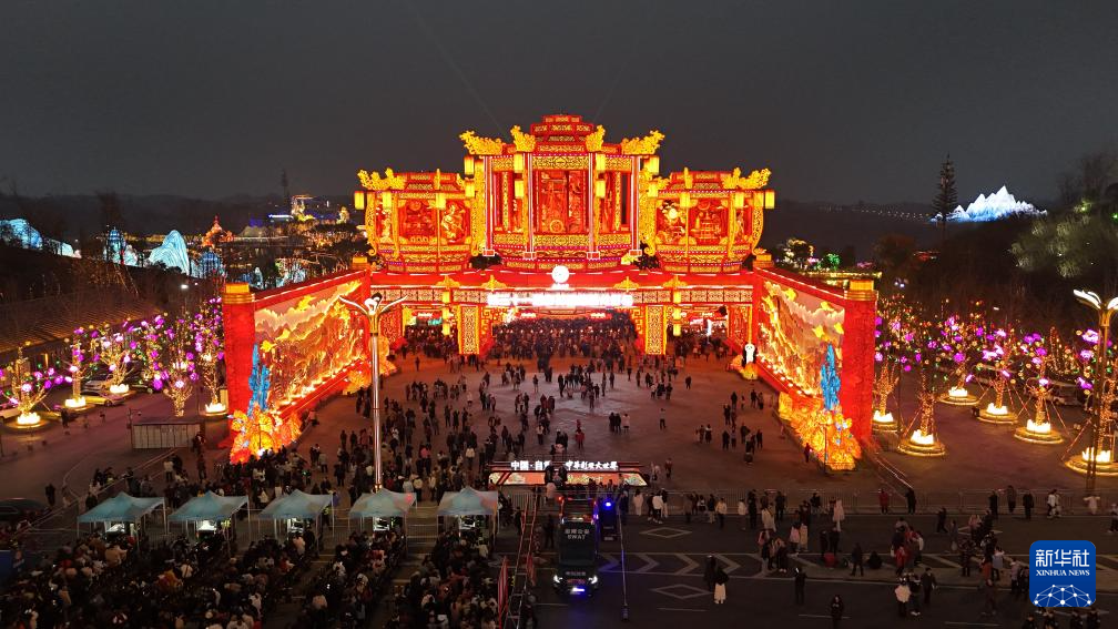 1月29日拍攝的第31屆自貢國際恐龍燈會現場(無人機照片)。