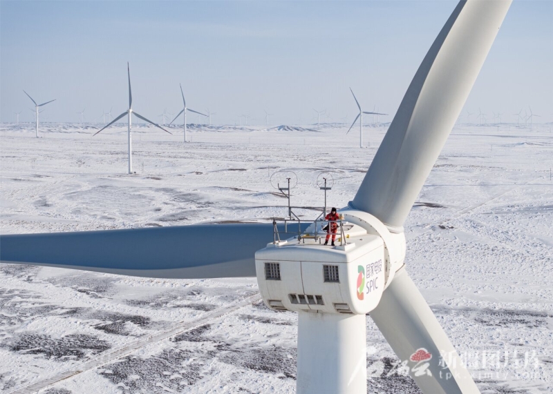 技術人員在木壘老君廟風電場檢修風機(資料圖片)。何龍攝