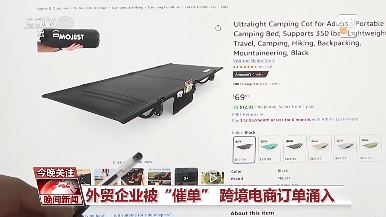 在這家跨境電商企業記者發現,一款戶外躺椅的平臺售價從109.99美元被調回了之前的69.99美元,在關稅問題出現之前,這款躺椅每天單一平臺就能賣出三四千臺,美國加徵關稅後,由于產品價格上調銷量曾急速下滑,這兩天,美國客戶開始大量補貨。