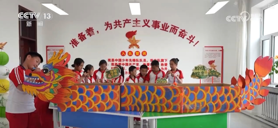 在黑龍江,少先隊員們來到虎林市虎頭鎮二戰終結地紀念園,致敬緬懷先烈,重溫抗戰故事。大家還一起包粽子、做龍舟模型、共繪百米長卷,抒發愛國情懷。