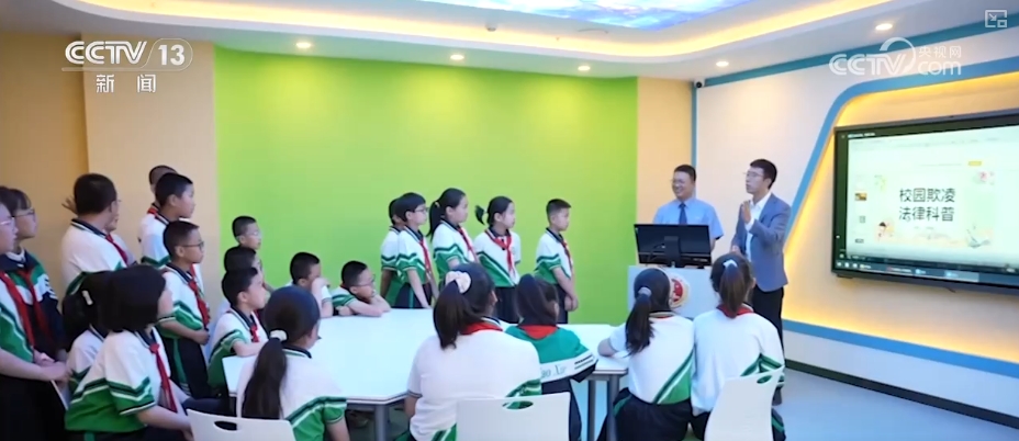 在甘肅通渭,轄區學校迎來了檢察官和司法人員送上的《律法護航 青春飛揚》法治課。還有的學生被邀請到當地未成年人“一站式”保護中心,現場觀看普法視頻,體驗VR、AR、法律知識競答、法治沙龍等活動。