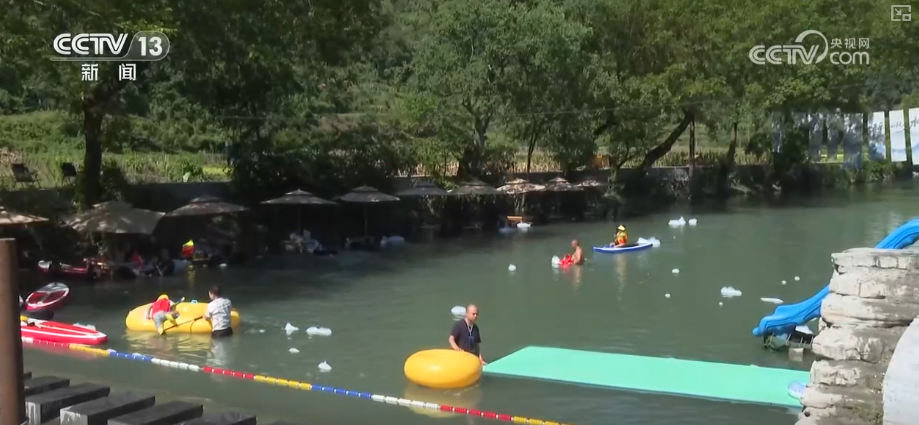 在湖南吉首,洽比河旅遊公路串聯起深山中的9個傳統苗寨。遊客們自駕而來,沿河溯溪露營,體驗水上項目,或躲進竹椅遮陽傘下,感受清涼愜意。