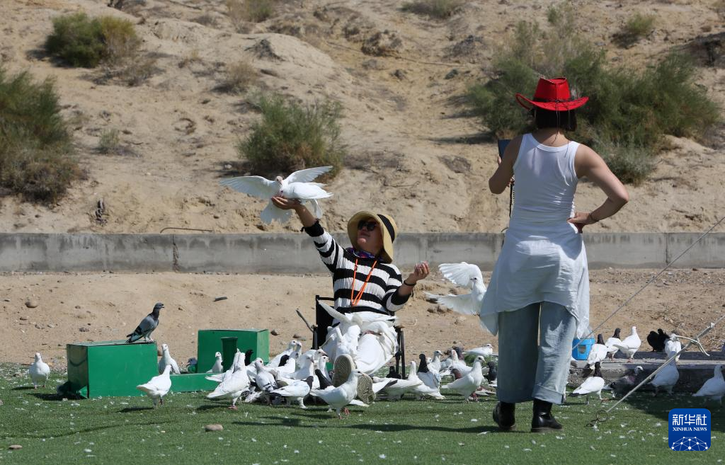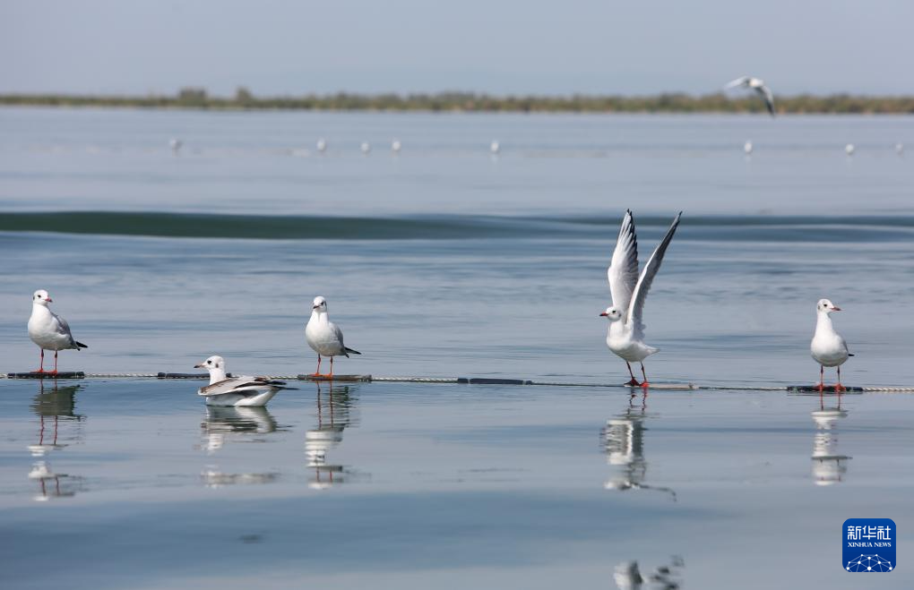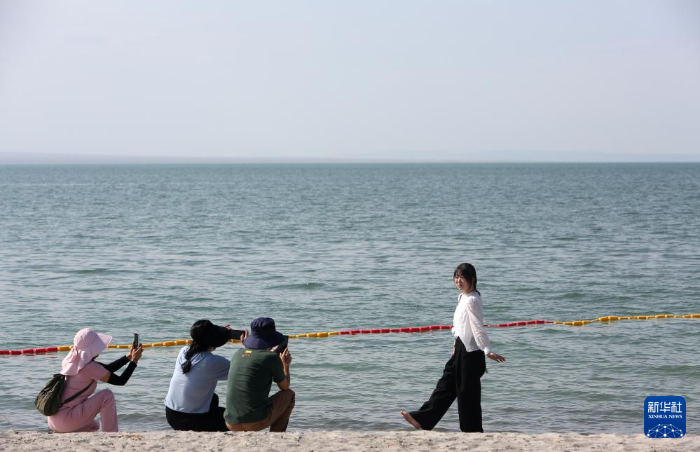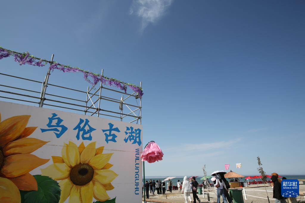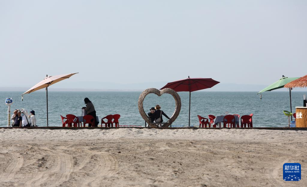 9月8日,遊客在新疆阿勒泰地區福海縣烏倫古湖金沙灘景區遊玩。