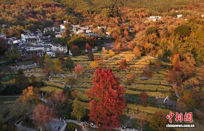 2024年11月11日,初冬時節,黃山市黟縣塔川村景色斑斕。(資料圖 無人機照片) 中新社記者 韓蘇原 攝