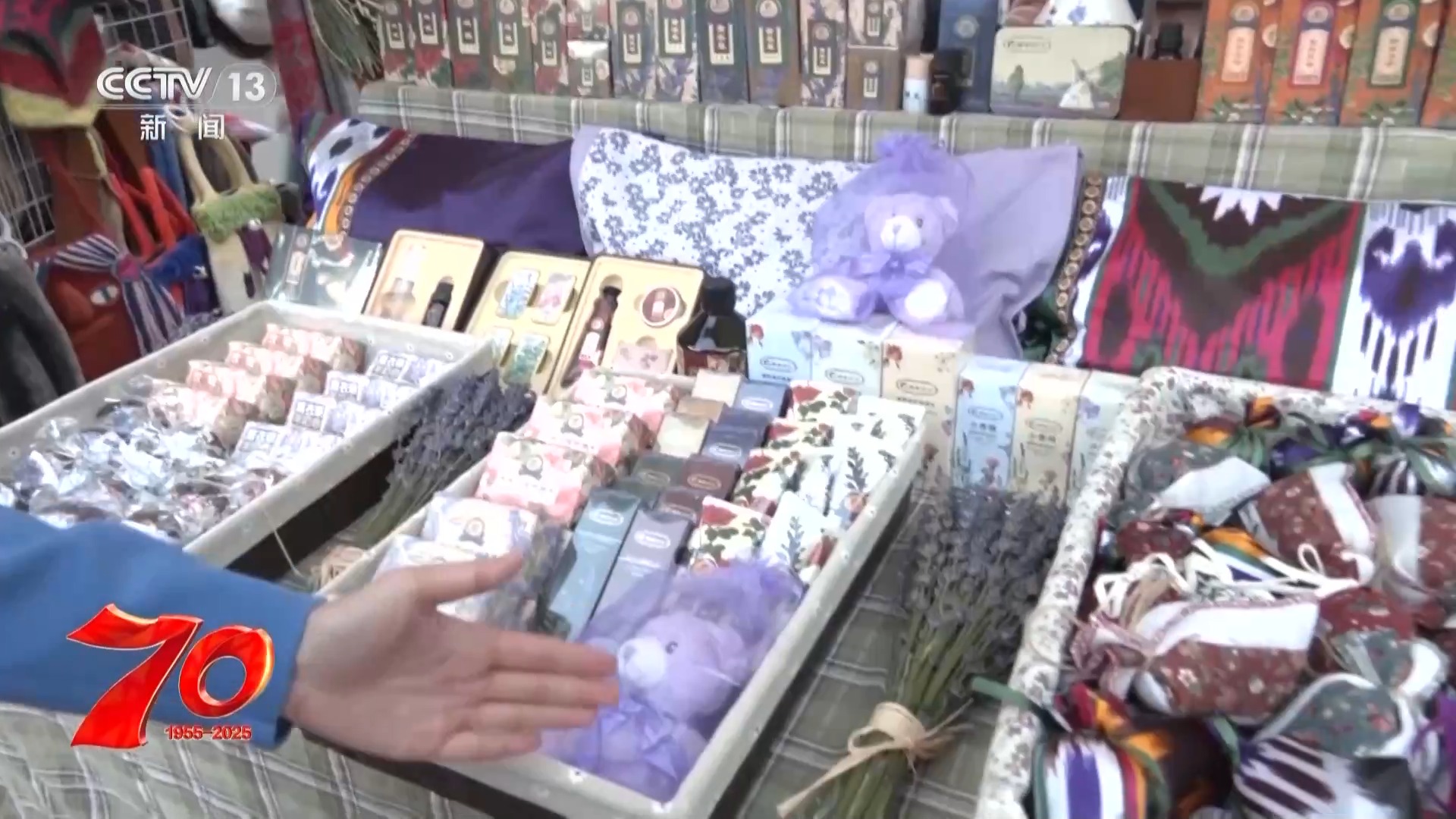 在這記者還看到了一輛用新鮮的薰衣草裝扮好的花車,上面擺滿了薰衣草制作的精油、手工皂、香薰等產品,既好聞又好看。