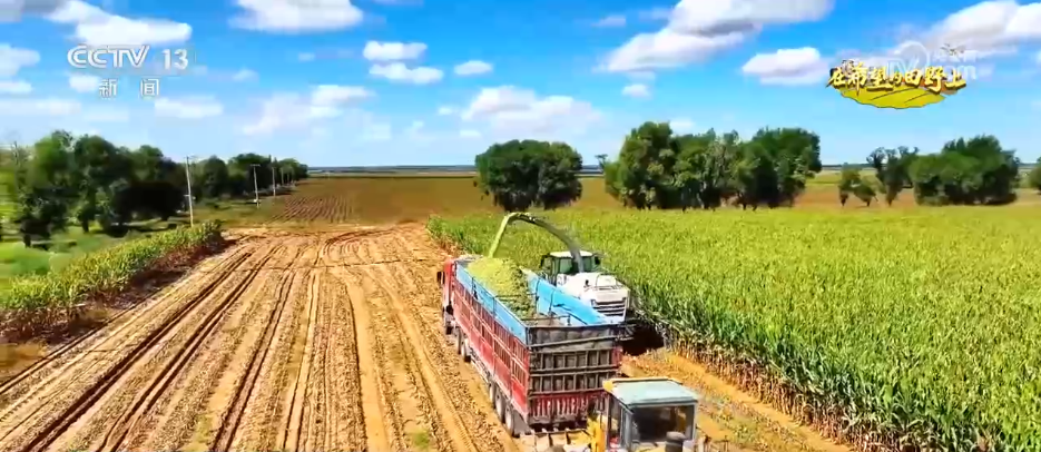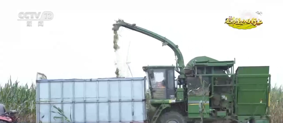 而在距離該玉米地不到10公里的奶牛場里,工人們也正在進行著“收貯”作業。一車車滿載青貯飼料的運輸卡車陸續將青貯飼料傾倒在固定場地後,進行壓實、晾曬、發酵等工藝,歷時45天左右,便可成為牲畜的優質“過冬口糧”。
