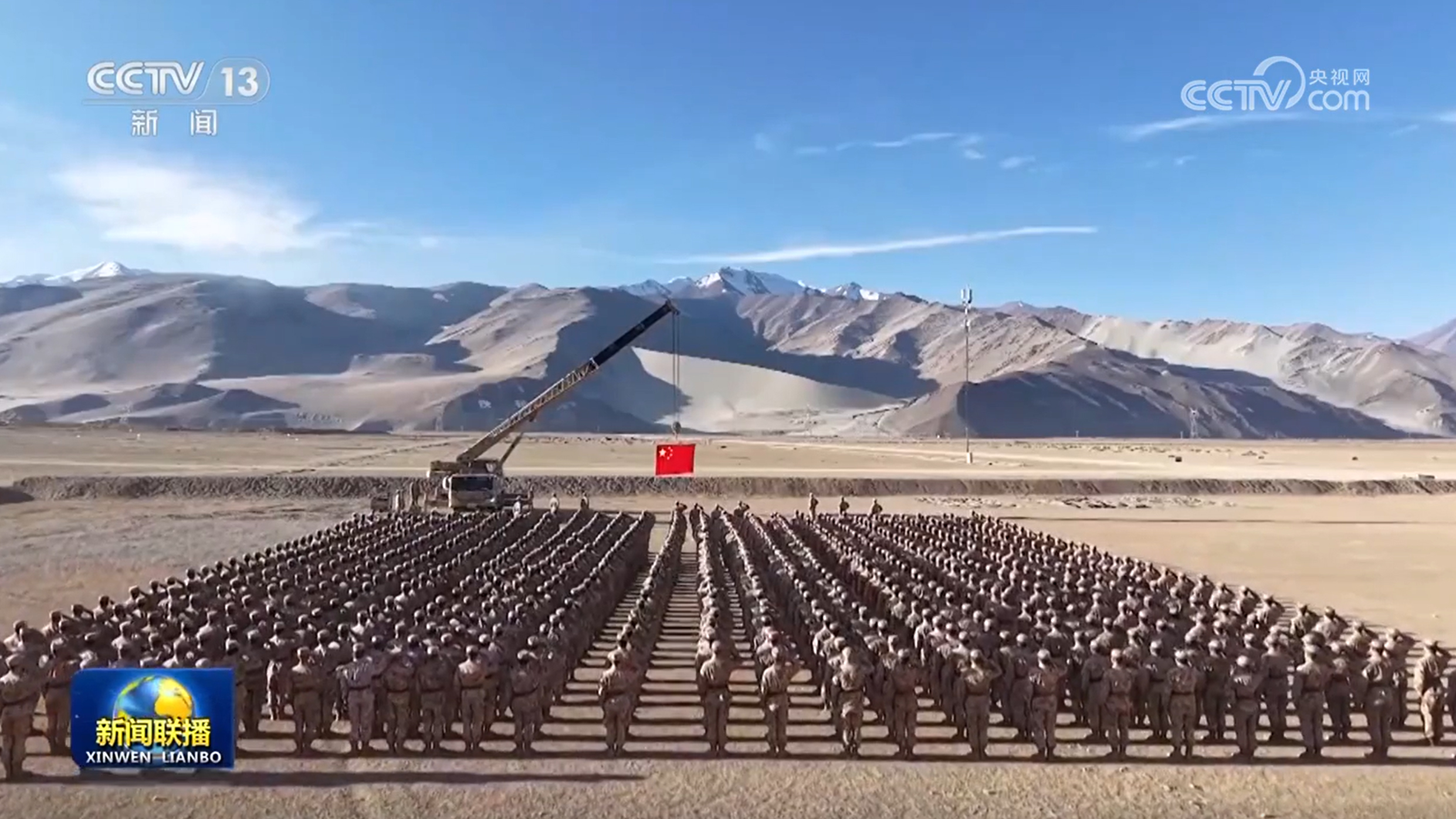 在東極列島最東端的海軍某觀通站,在“西陲第一哨”斯姆哈納邊防連,在北緯53°的北極哨所,在“南海第一哨”華陽礁,在全軍海拔最高的駐兵點,從雪域高原、戈壁大漠到萬里海疆,共和國衛士們升起一面面五星紅旗,為祖國母親獻上祝福。