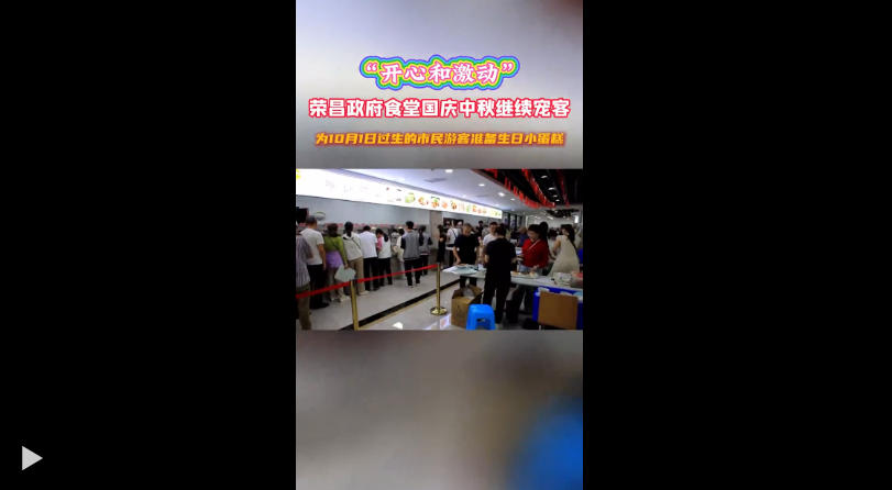 10月1日,榮昌有關部門工作人員向記者介紹,當天中午有2700人用餐,食堂蒸了86盤米飯,用了550斤米;鹵鵝250斤提前售完,當天中午還送出15個生日蛋糕。僅10月1日全天,食堂就準備了榮昌豬肉650斤,蔬菜2000斤,以保障遊客用餐順利。