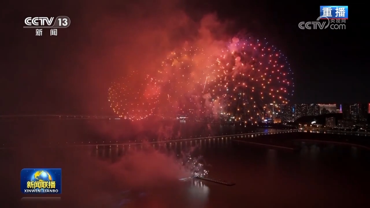 10月1日,香港在維多利亞港舉行國慶煙花匯演,超過3萬枚煙花照亮夜空。匯演中還特別融入了東江水、大熊貓和全運會等元素,吸引眾多市民和遊客前來觀看。在澳門,伴隨《七子之歌》等歌曲,不同造型的煙花在夜空中綻放,表達對祖國的美好祝福。當晚還舉行了“火樹銀花嘉年華”,為觀眾提供更多觀賞樂趣。