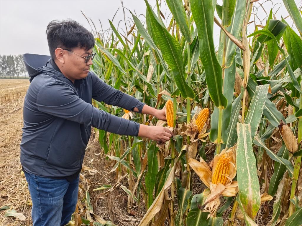 “今年7、8月高溫幹旱,9月連陰雨,但我們的一些抗高溫、耐穗腐的新品種經受住了考驗,幫助我們選出了好品種。”試驗田負責人、河南聯騰農業科技有限公司研發總監李傳軍說,加大抗逆性強的新品種的研發是保障糧食穩產的重要防線。