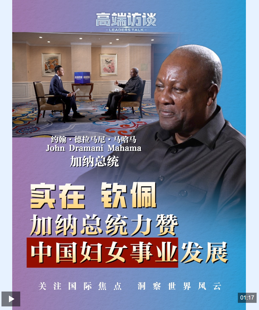 近日,加納總統馬哈馬接受總臺《高端訪談》節目專訪時,用“實實在在、令人欽佩、為之驕傲”力讚中國婦女事業成就。