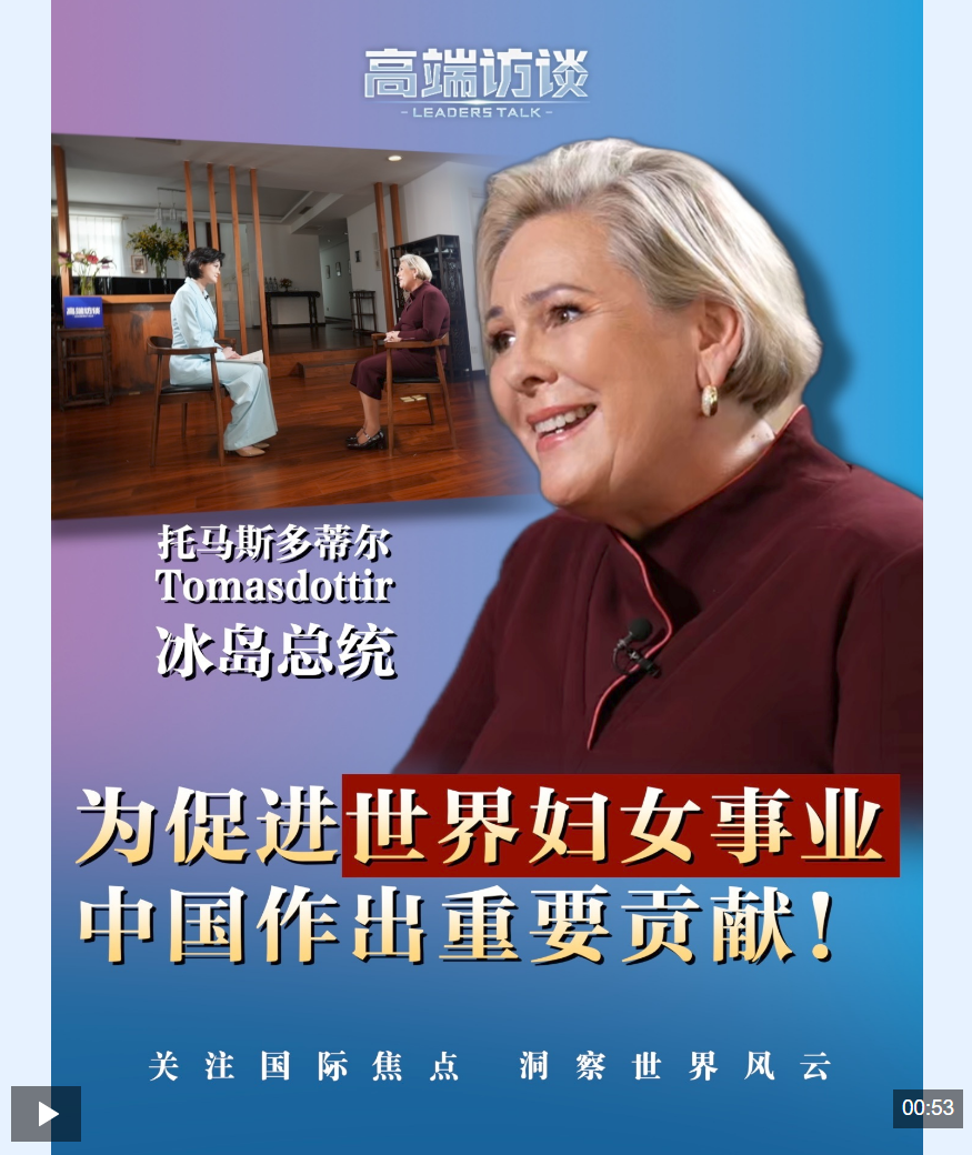 高端訪談堶冰島總統:中國為促進世界婦女事業作出重要貢獻