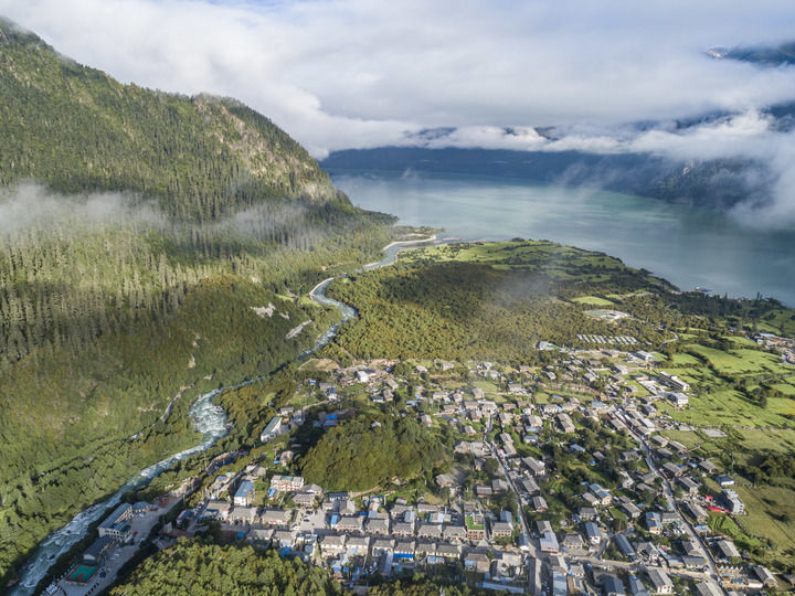 這是2023年7月20日拍攝的西藏林芝市工布江達縣錯高鄉結巴村景色(無人機照片)。新華社記者 孫非 攝