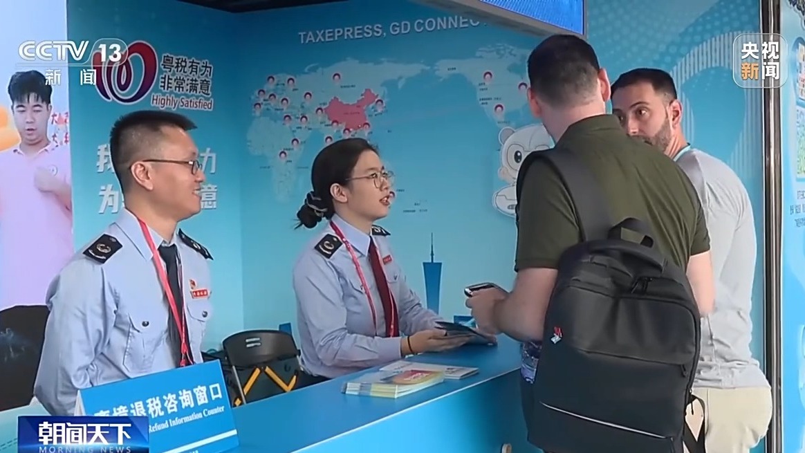 隨著多項免簽政策落地,以及離境退稅起退點降至200元、現金退稅限額提高至2萬元等政策紅利釋放,廣交會客商及國際遊客的消費熱情被進一步點燃。為便于客商和遊客及時退稅,主辦方還提供了志願服務。