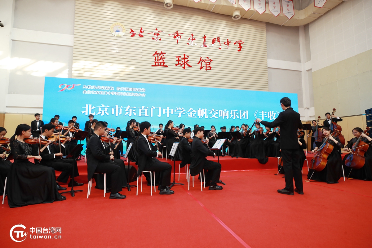 學校金帆交響樂團奏響激昂歡快的《豐收》樂曲,悠揚的旋律為大會拉開帷幕。(中國臺灣網發)
