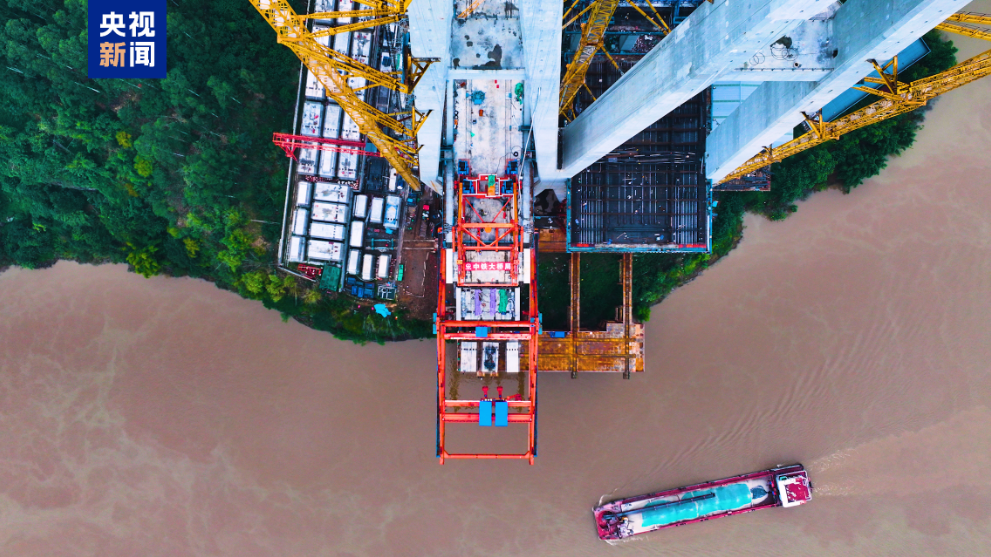 渝萬高鐵石沱長江大橋首節鋼梁成功架設