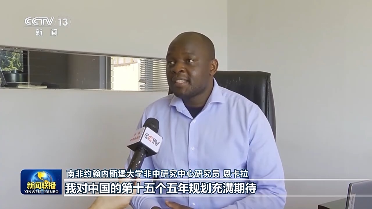 南非約翰內斯堡大學非中研究中心研究員 恩卡拉:我對中國的第十五個五年規劃充滿期待,我認為它將繼續聚焦以科研創新、人才培養、綠色發展等為主要內容的新質生產力的發展。我也期待中國在綠色能源、基建合作等領域持續發揮引領作用,為全球南方國家發展注入至關重要的確定性與驅動力。