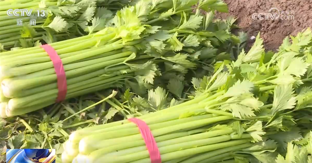 在河南安陽市滑縣城關街道史固村的蔬菜種植基地,大棚種植的1300余畝芹菜已陸續進入採摘期,工人們正加緊採收、打捆,每天新鮮採摘的芹菜超過20萬斤。