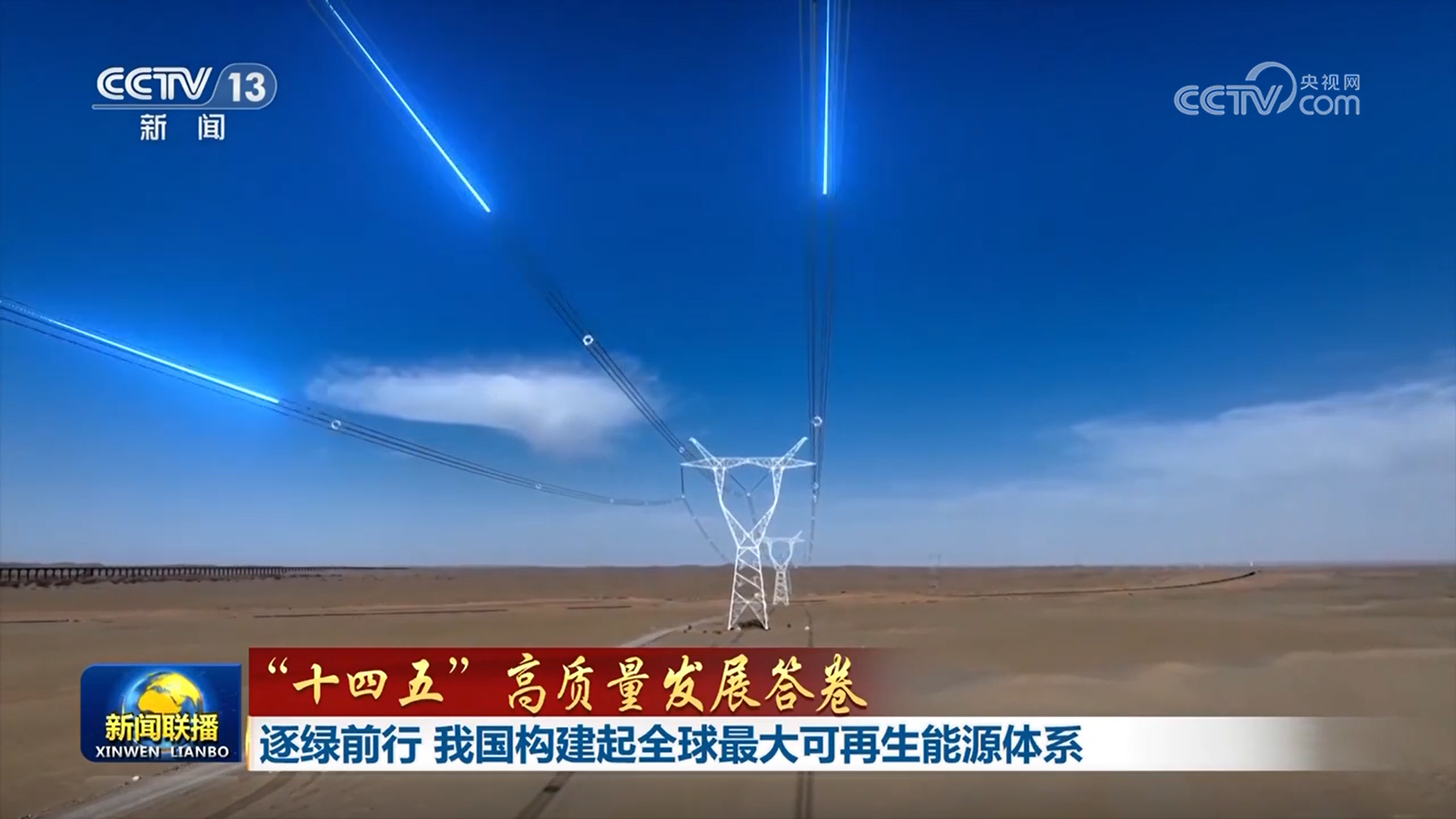 央視網消息(新聞聯播):荒無人煙的沙漠、戈壁與荒灘變身巨大的發電場,橫跨千里,清潔能源毫秒之間東西“閃送”。“十四五”以來,中國逐“綠”而行,在廣袤山河間鋪展能源綠色變革的壯闊圖景,神州大地上能源生產與消費格局正在改寫。