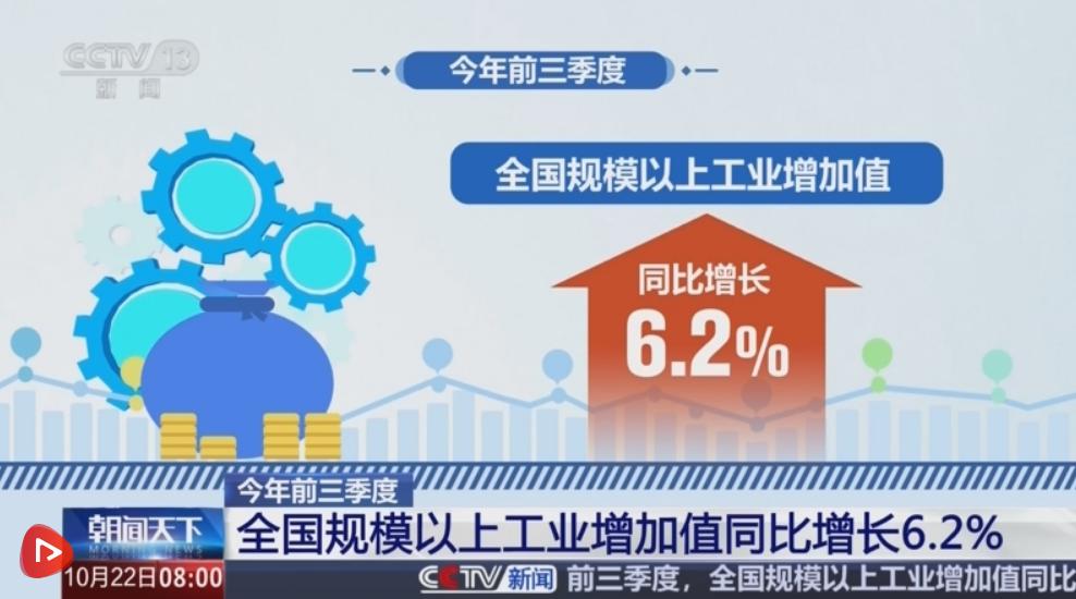 央視網消息:今年前三季度,全國規模以上工業增加值同比增長6.2%。在更加積極有為的宏觀政策促進下,我國工業生產實現較快增長,工業經濟呈現穩中有進的發展態勢。