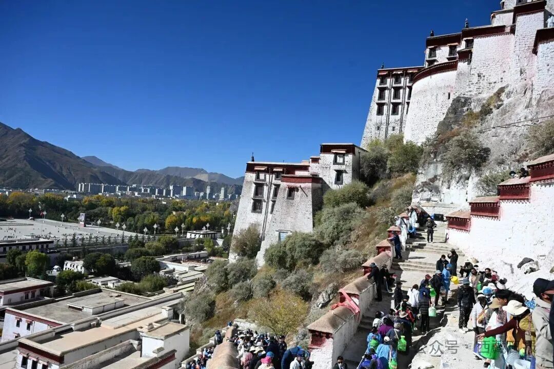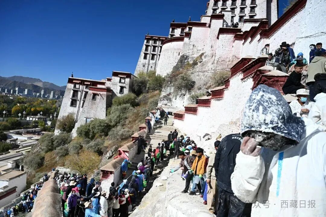 一位來自廣東的遊客剛剛脫下罩衣,臉上還挂著未幹透的涂料,她笑著說自己已經在拉薩旅居了兩個月,下午就要返程,“參與刷牆,給我這趟西藏之旅畫上了一個完滿的句號。”