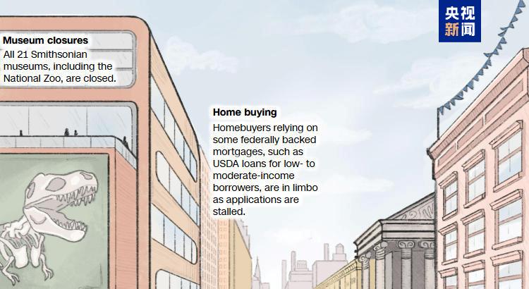 有美國媒體發布了一張圖,解讀政府“停擺”給美國社會生活帶來的9大項影響。