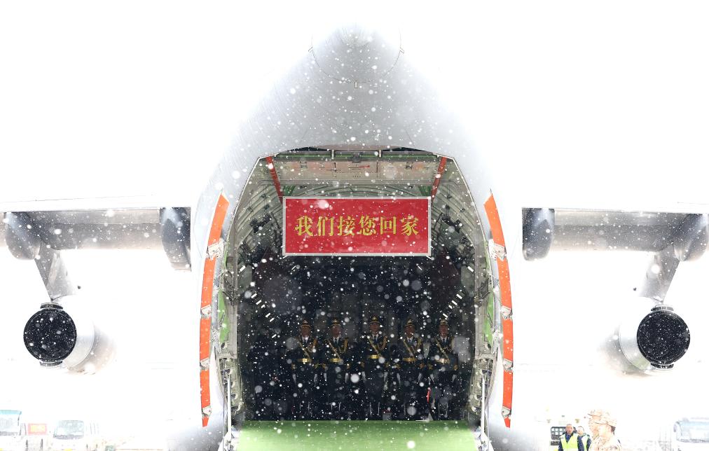 2023年11月23日,第十批在韓中國人民志願軍烈士遺骸抵達沈陽桃仙國際機場。新華社記者曹燦攝