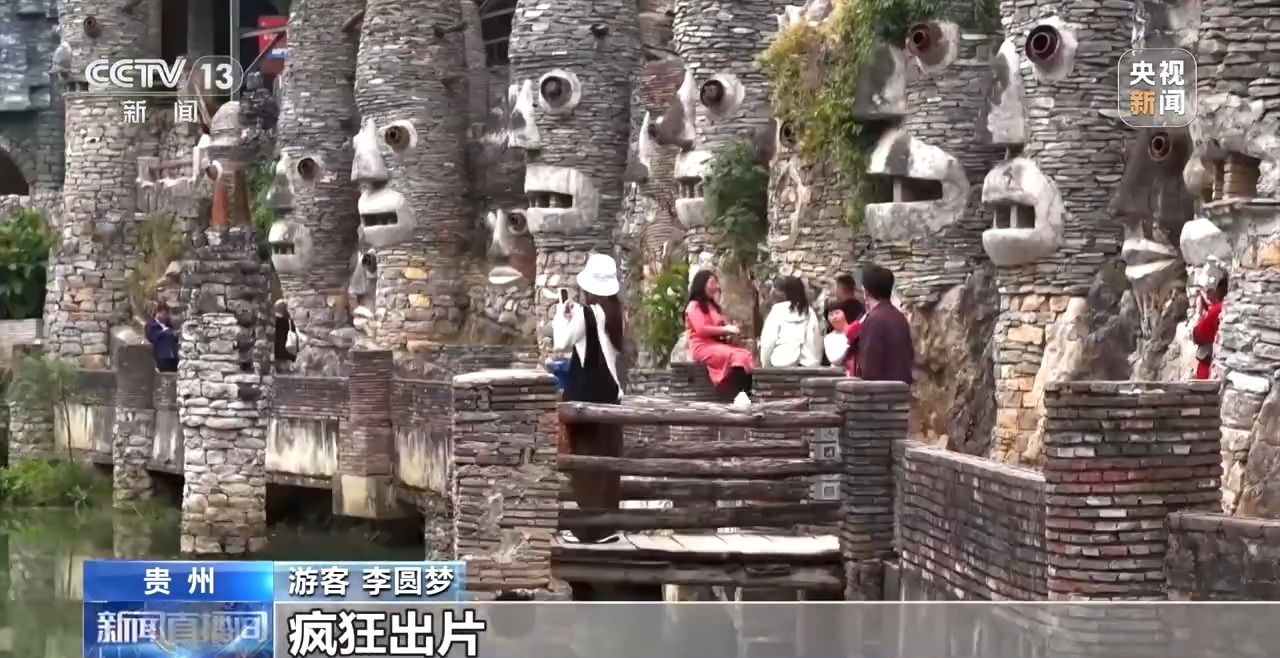 咧嘴憨笑、表情誇張,這些神態各異、奇趣搞怪的石像前圍滿了拍照打卡的年輕人,這里是貴州貴陽夜郎谷景區一處抽象雕塑藝術空間。