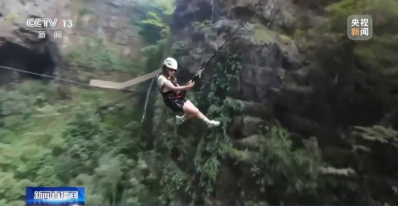 除了用醜萌可愛的物品彰顯個性,旅行“必出片兒”也成為當下很多年輕人表達自我的一種方式。今年暑期開始,貴州開陽縣猴耳天坑景區異常火爆。這里是一處典型的岩溶漏鬥,直徑約300米,坑深約280米,依托獨特的地質奇觀,當地開發出了蹦極、大秋千、探洞等多種極限運動。而就在如此驚險刺激的體驗之下,也要出片!