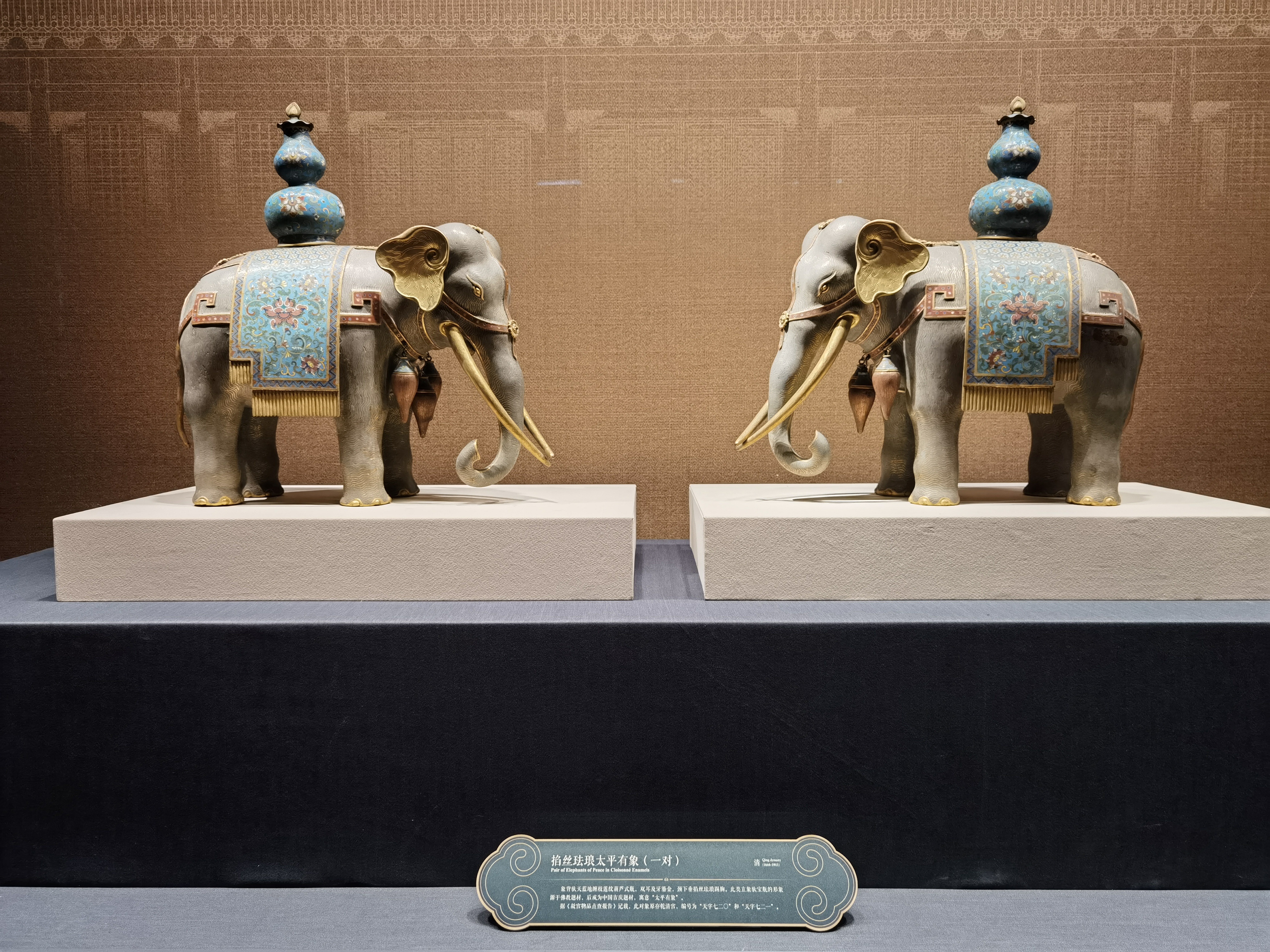 △故宮展出的掐絲琺瑯太平有象。(總臺央視記者程愛華拍攝)