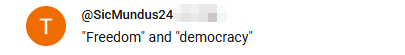 網友@SicMundus24諷刺道:“(這就是美國的)‘民主’與‘自由’。”