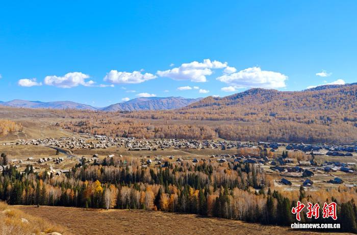 眼下新疆秋意正濃,位于阿勒泰地區布爾津縣的禾木村層林盡染,遊人如織。