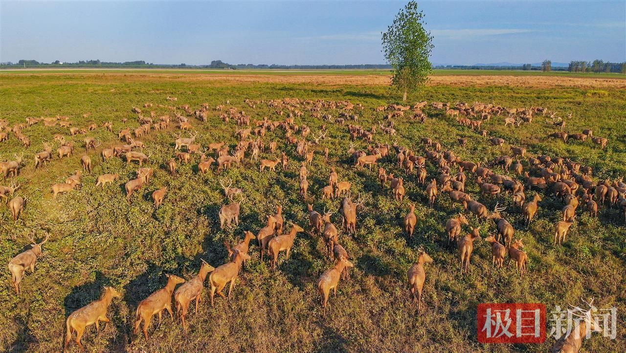 石首天鵝洲的優美生態環境,讓麋鹿棲息生長(極目新聞記者 黃志剛攝)
