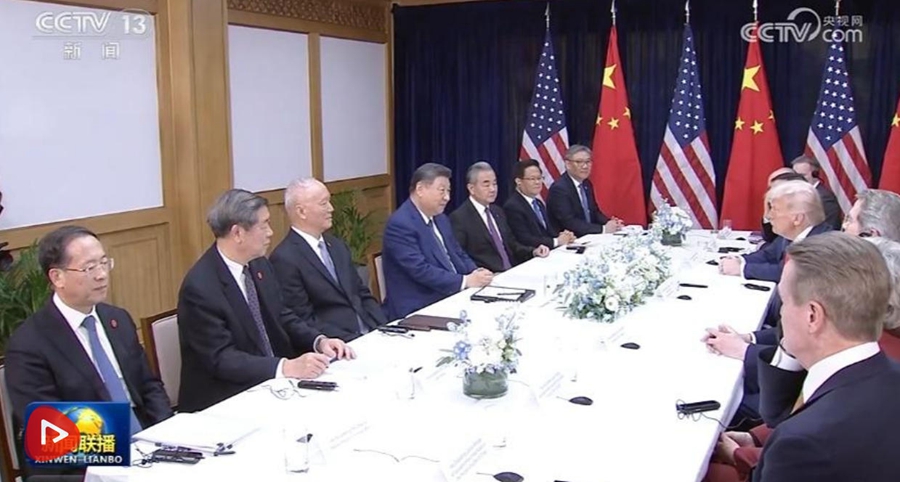 當地時間10月30日,國家主席習近平在釜山同美國總統特朗普舉行會晤。