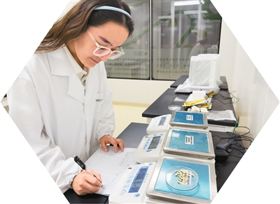 科研人員對種質資源進行考種、稱取種子千粒重。