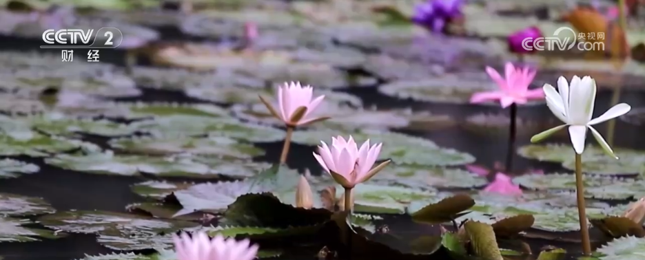 在廣西南寧人民公園天鵝湖水域,湖面上的睡蓮競相綻放,粉色、白色、紫色的花朵散發出淡淡清香。美麗的花景與湖邊棧道、園林景觀相映成趣,吸引許多市民遊客賞花拍照。