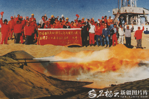1989年塔中1井噴出高產油氣流。塔里木油田供圖