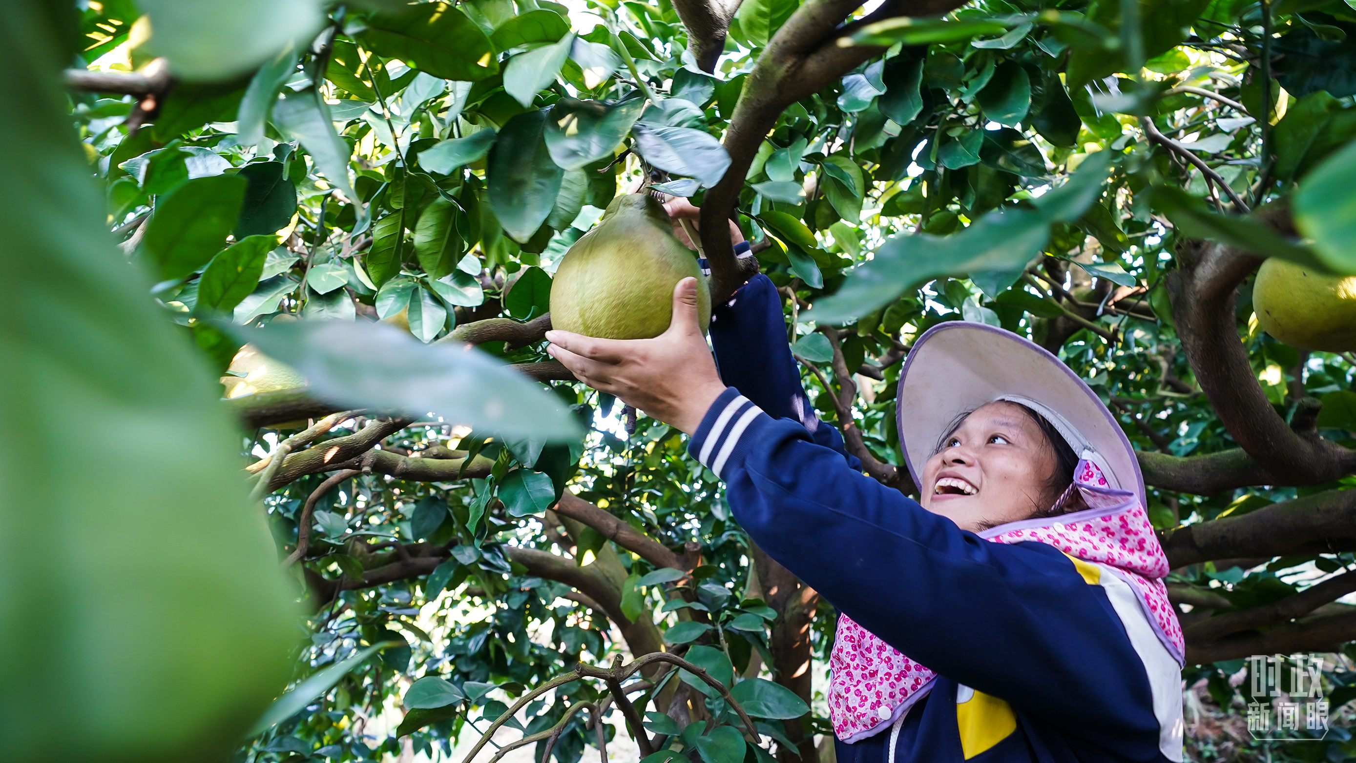 △南福村黃澄澄的柚子挂滿枝頭。(總臺央視記者鄂介甫拍攝)