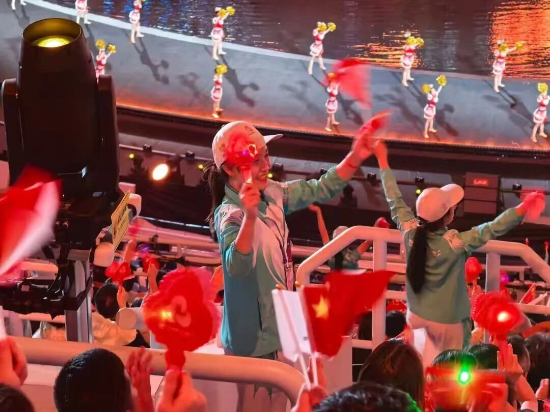 能量滿格的李鎂雪,也是全運會志願者的一個生動縮影。在11月9日晚十五運會開幕式上,身著“碧青綠”的“小海豚”一定令你印象深刻。
