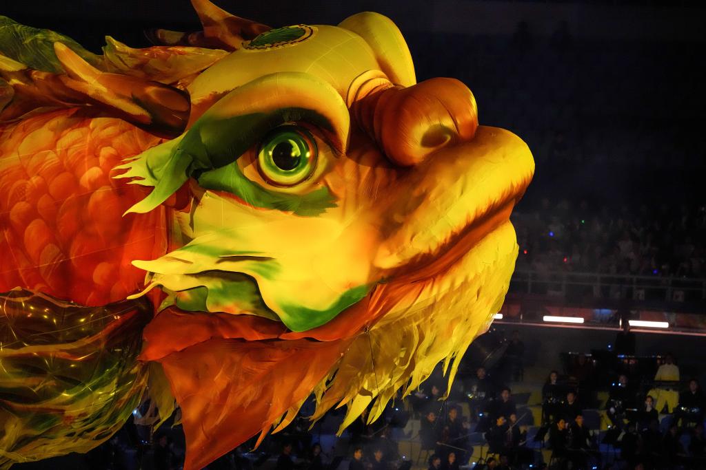 這是11月9日拍攝的第十五屆全國運動會開幕式現場表演上的鰲魚。 新華社記者 賴向東 攝