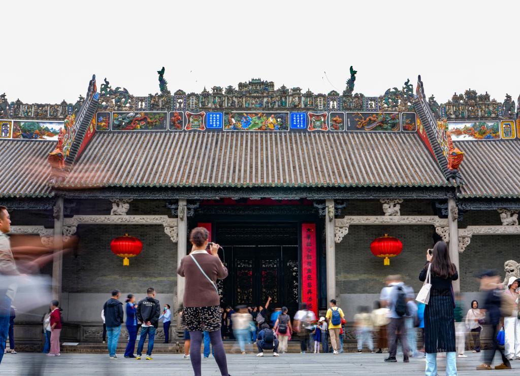 11月12日,遊客在廣州陳家祠前拍照、遊覽。新華社記者 肖恩楠 攝