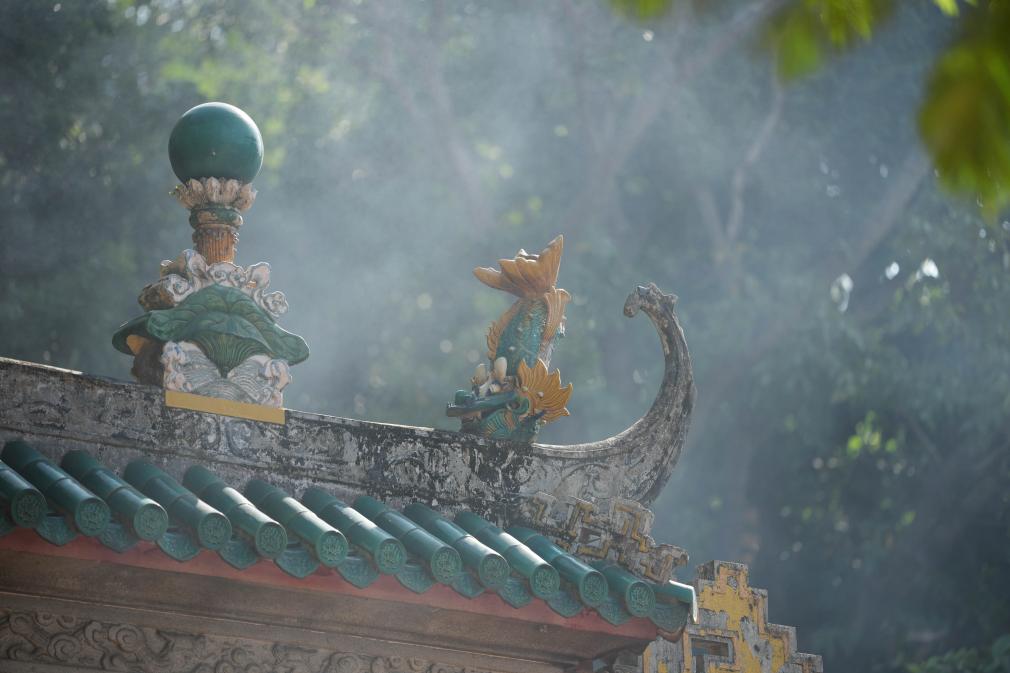 11月11日,廣州市花都區炭步鎮茶塘村洪聖古廟屋脊上的鰲魚裝飾。新華社發(駱紫媚 攝)