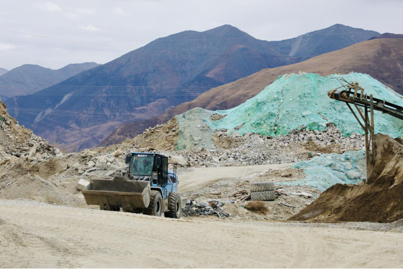 圖為廠區內工人開著推土機在工作。次仁羅布 攝