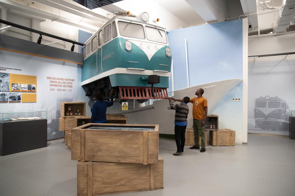 11月12日,在讚比亞坦讚鐵路紀念園,幾名當地人參觀坦讚鐵路紀念館。新華社記者 彭立軍 攝