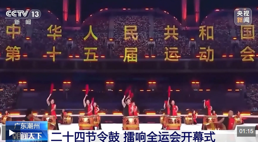 第十五屆全運會賽事精彩紛呈,充滿嶺南風情與大灣區特色的文化元素同樣大放異彩。在開幕式暖場環節中,一段融合傳統非遺與現代舞美的二十四節令鼓表演震撼全場,隨著鏡頭傳遍全國,潮州獨特的文化魅力也深入人心。