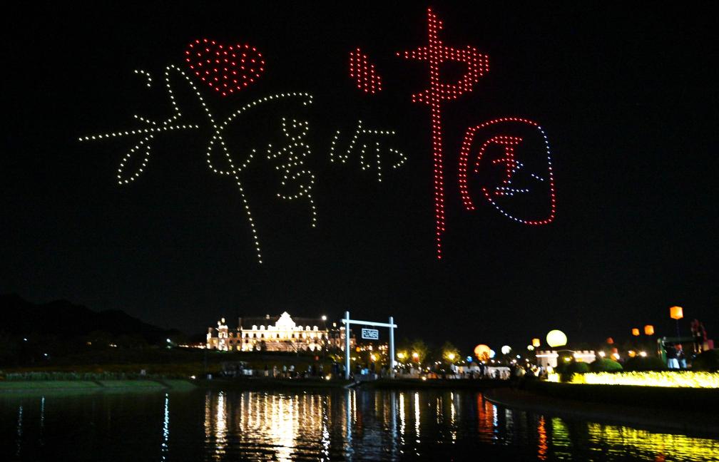 10月4日晚,在浙江省金華市武義縣花田美地景區,精彩的無人機表演為遊客呈現了一場視覺盛宴。新華社發(張建成攝)