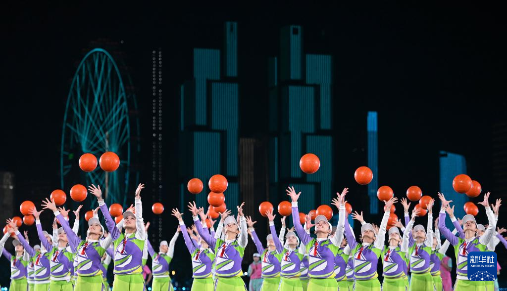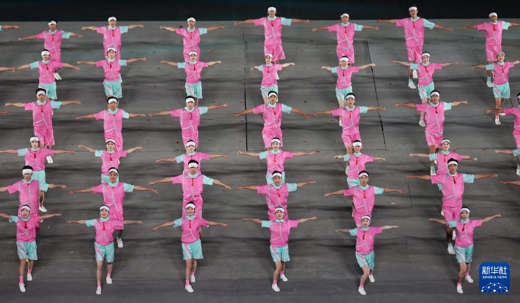 11月21日,演員在閉幕式現場表演第九套廣播體操。